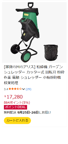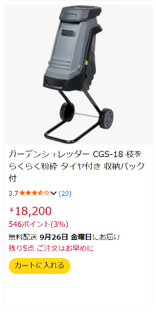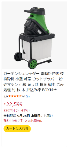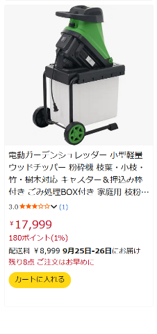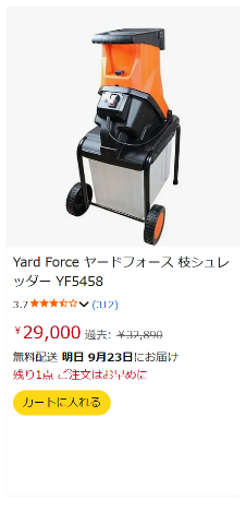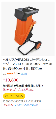 今回の1回で終わりならば頑張れそうですが、また枝の処分があるかもしれないので、枝粉砕機を検討しました。