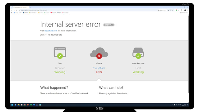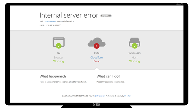 公式発表はありませんが、IKEAのウェブサイトを開けばCloudflareにエラーがあるであろう画面が表示され、世界中でCloudflareのエラーによって障害が発生していることを鑑みれば、IKEAの通信障害は、Cloudflareによる通信障害である可能性が高いと思います。