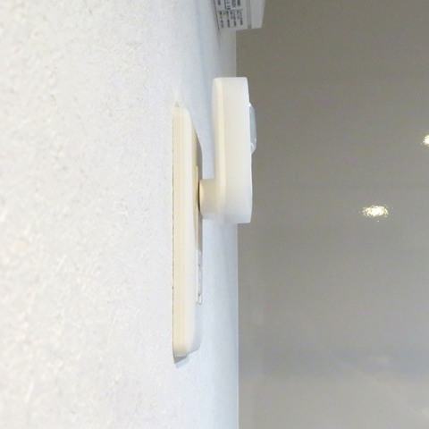 下図は2メートルくらいの高さにあった冷蔵庫用コンセントに挿し込んで使っている例ですが、ここに取り付けた分は非常に広範囲の人をキャッチします。