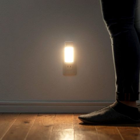 明るさを感知して点灯/消灯するタイプに、人感センサーも加わったナイトライト(フットライト)です。暗いとき、かつ動いている人や動物を感知したとき、点灯します。 ナイトライトとしての機能以外に、停電時に自動点灯する保安灯としての機能も加わっています。壁から取り外せば、懐中電灯として使えるタイプの商品もあります。 埋込2個用ボックスに対応しているので、壁にあるコンセントと取り換えることで、常時電源供給され、壁からの出っ張りも少ない仕上がりになります。 交換作業には、電気工事士免状が必要になります。 |