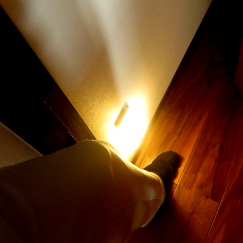 だいたいの場合、居室からトイレまで、トイレから階段までといった短距離、数歩で行き着くので照明を点灯させるほどではないが、足元に何か落ちているのではないかと疑心暗鬼でもあるので、まさにフットライトの出番でした。