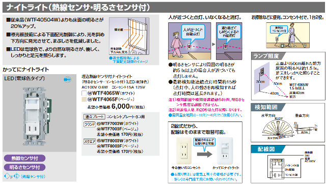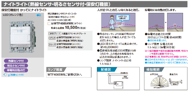 Panasonic 埋込明るさセンサ付・熱線センサ付(人感センサ付) ナイトライト WTF4065
