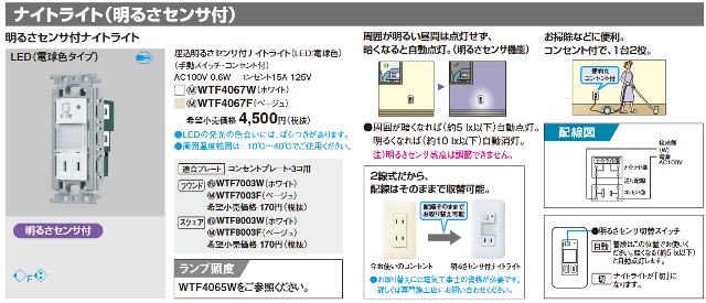 Panasonic 埋込明るさセンサ付ナイトライト WTF4067W