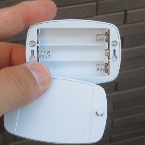 本体背面のフタをズラすと、電池ボックスが見えます。1台あたり3本の電池を使います。今回は上下の宅配ボックスに設置、したがって電池は6本です。
