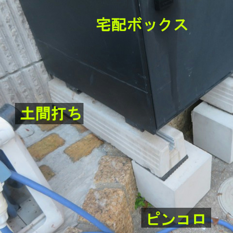 コンクリートベースとの関係で、長さが足りない部分はピンコロを置いて調整しました。