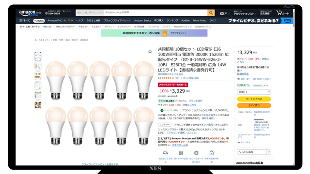 今回は、リビング照明を電球色に変えようと思い、試しにアマゾンのプレミアムフライデーセールで『電球色』を謳う製品を買いました。