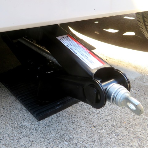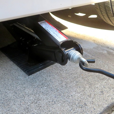 ジャッキは、最初の位置合わせは目視しながら、ジャッキの操作部を手で回して定位置に嵌めます。