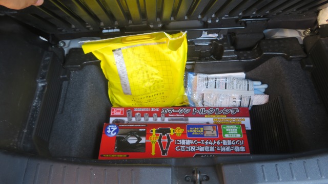 先ほどのジャッキ類と一緒に、車に積んでおります。