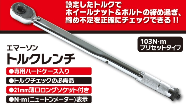 トルクレンチはエマーソン(Emerson)のEM-29にしました。使うのは21mmのソケットだけですが、オイル交換など他の作業でも使えるソケットが付属しています。