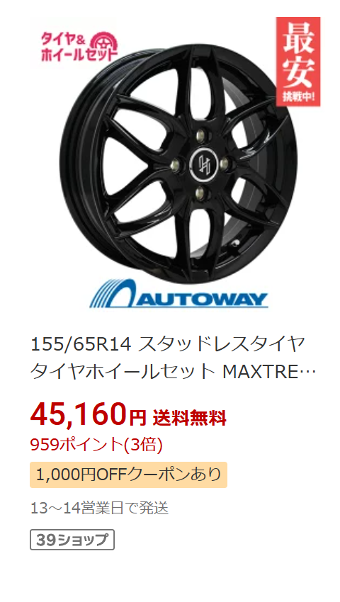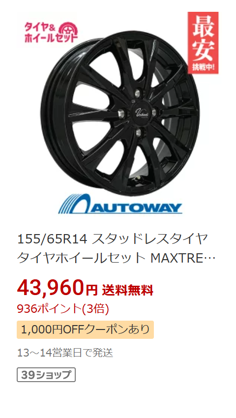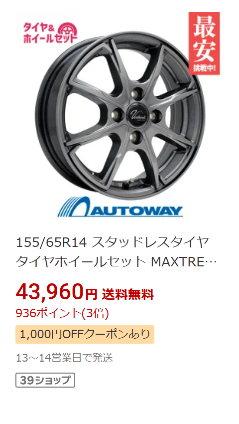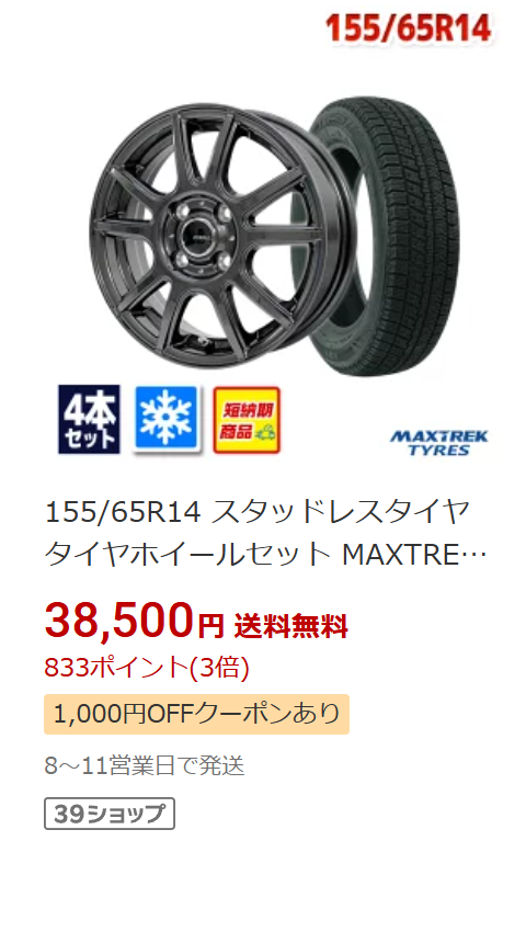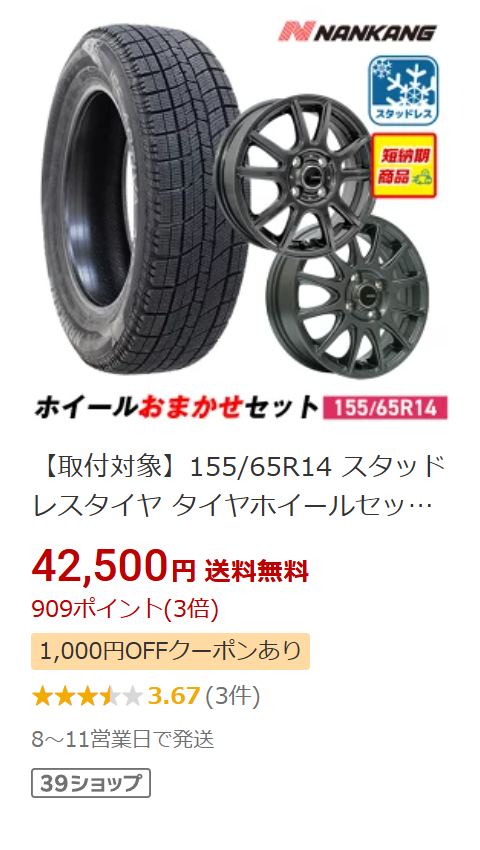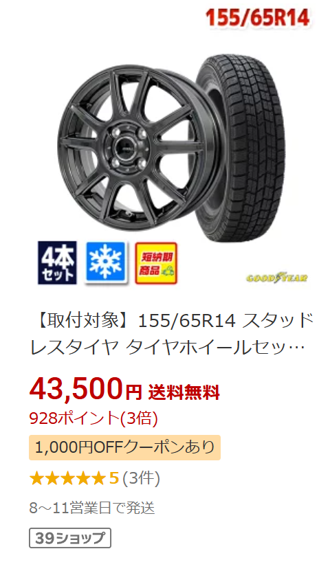 ということで、ホイール付きのスタッドレスタイヤを買うことにしました。