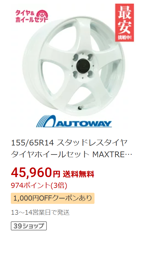 最安の37,500円のセット、その1つ上の42,500円のセットの違いはタイヤの性能でした。