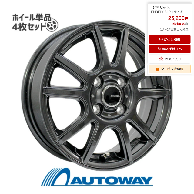 このセットに付いているホイールの単価を調べてみたところ、4本セットで25,200円で売られている商品でした。