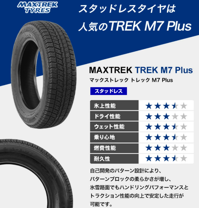 1件目の37,500円のセットは、タイヤはMAXTREK TYRES TREK M7 Plus、ホイールはEMBELYです。