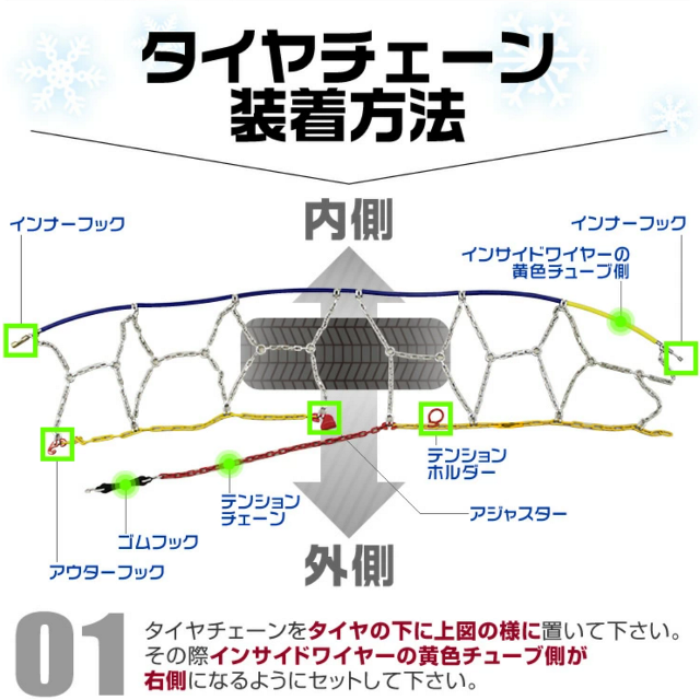 冬用タイヤ規制が実施されている道路に進入するための通行手形のようなものとして、スタッドレスタイヤとチェーンを調達することにしました。