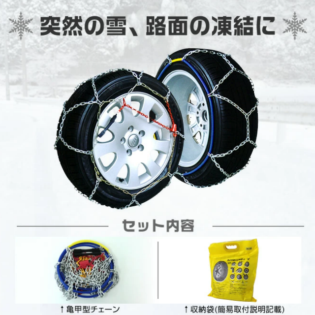 普段から走行に関わるスタッドレスタイヤはそれなりに良い物を、チェーンを装着してまで走行する可能性は低いと考えてチェーンは安い物を買いました。