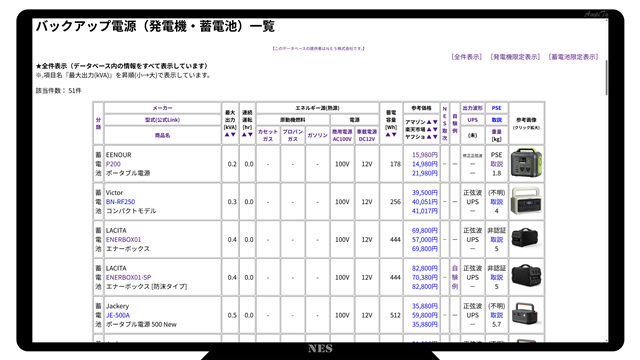 今回は、発電機や蓄電池などの予備電源の類をまとめたデータベースについて触れてみました。