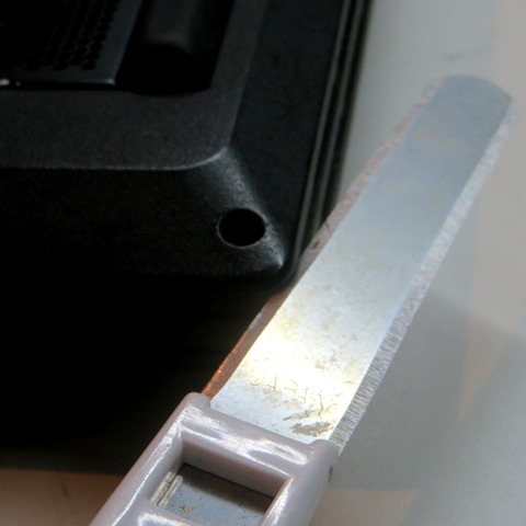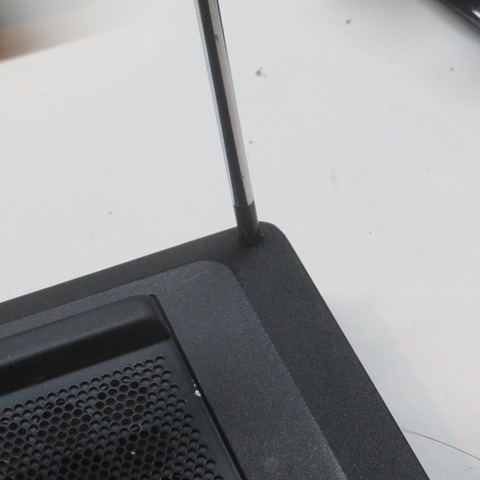 すべてのネジを外したあとで、裏蓋を外します。本体と裏蓋の隙間に工具を挿入して、こじ開けます。